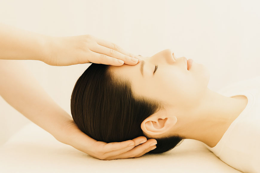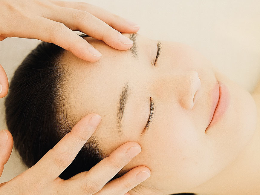 顔をやさしく包み込むようなタッチで顔と頭をゆるめていくセラピーです。リフトアップだけでなく、顔にたまった感情も、そっと解放されていきます。