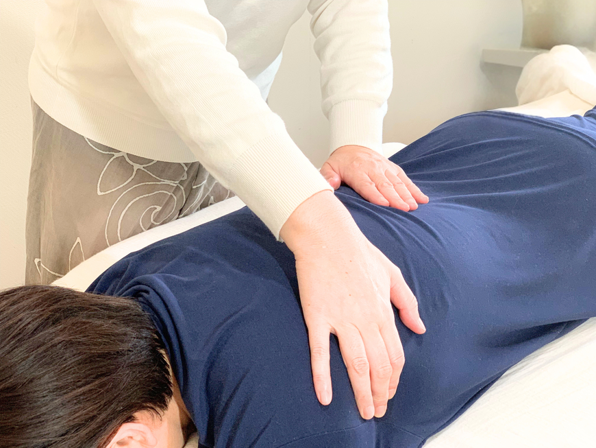 チネイザンは、手のひらでやさしくお腹にふれ、感情を解放していくセラピーです。